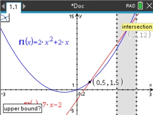 equation, solve using the intersect command to find the points where the two