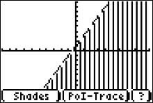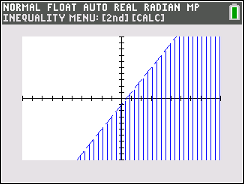 • Again, you must determine whether to draw a solid or dotted line as the calculator (using this method) does not show dotted (or dashed) lines.  This problem needs a dotted line because it is strictly "less than" (no "equal to").